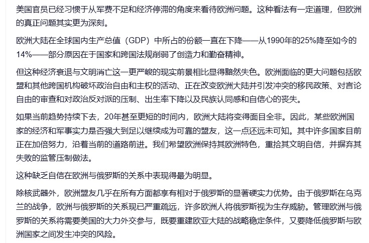 最近川普政府公布了新的国家安全战略,最主要的变化就是从川普第一任期的重返印太地区为重心的战略转向为西半球美洲为重心的战略,体现“美国优先”的保守主义观念和方向。美国直白尖锐批评了欧洲国家的思想和政策,并将要退出全球警察的角色。同时继续加大限制移民、打击毒品、促进制造业回归、保持高科技的领先。